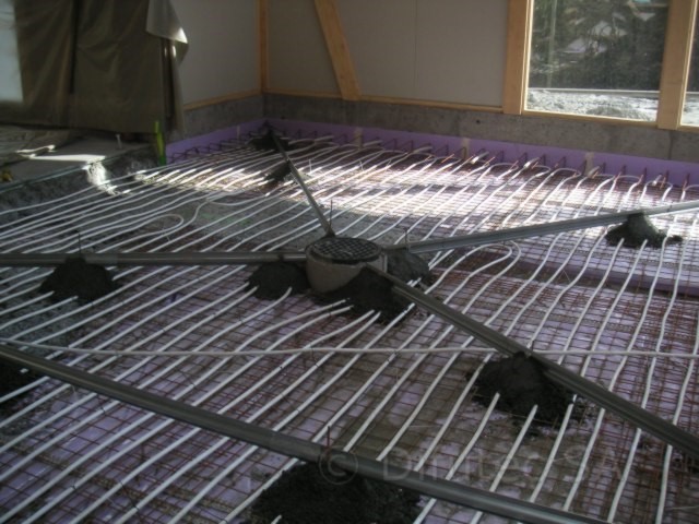 Le film d’étanchéité, le ferraillage (treillis soudé ou fers à béton), les différentes réservations, tubes, regards, etc… seront mis en place en même temps que le JOINDAL !